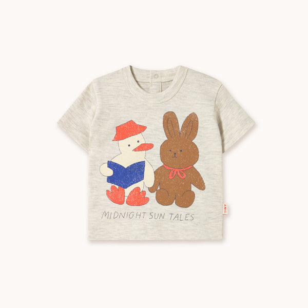 - When cute meets cool... this Tiny Readers themed tee is made from a soft cotton fabric for ultimate comfort. It features a vibrant, bold print on the front, adding a playful touch to your little one’s wardrobe. With its relaxed fit, short sleeves, and round neckline with a snap-back opening, it offers comfort and style for every adventure.