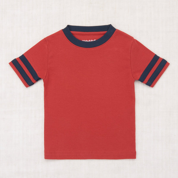 The Rec Tee is a classic ringer style tee featuring appliqué striped sleeves. A straight silhouette and set-in sleeve keep things casual, ready to be worn day after day.