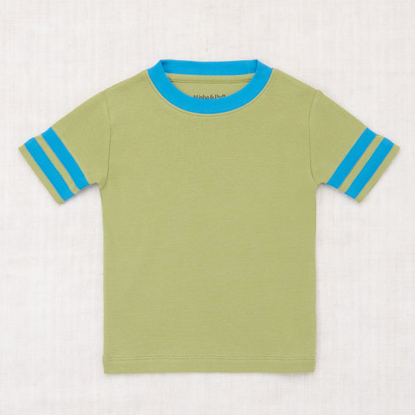 The Rec Tee is a classic ringer style tee featuring appliqué striped sleeves. A straight silhouette and set-in sleeve keep things casual, ready to be worn day after day.