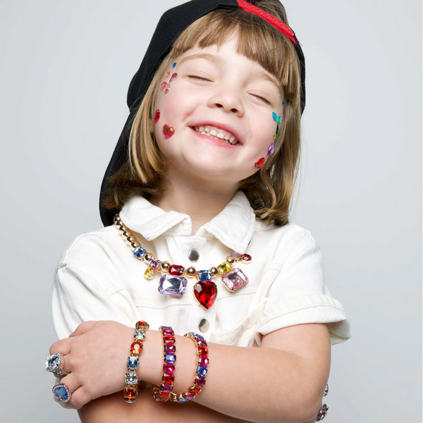 Roll out the red carpet, the star has arrived! Be prepared to turn heads with these oversized gemstones in vibrant jewel-tones. Perfect for dress-up, play-time, or brightening up your everyday outfit!
