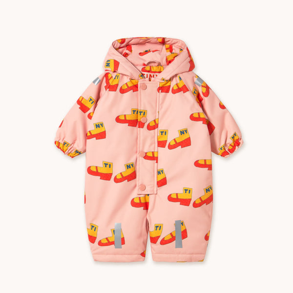 - Padded and cozy, the Walk Snow One Piece keeps warmth in and cold out. It features a sherpa-lined inner panel, a hood, and elasticated cuffs to block the chill. A full zip with snap-button placket makes dressing easy, while the adjustable inner waist ensures a perfect fit. Reflective strips add extra safety for winter adventures. Made from wind and water resistant fabric, ready for snowy days.
