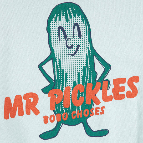 • Say hello to Mr. Pickles!  This sweet style is designed in the dreamiest light blue, and features this season's star character on the back.  Layer this little number up with your Bobo Choses spring and summer favorites!