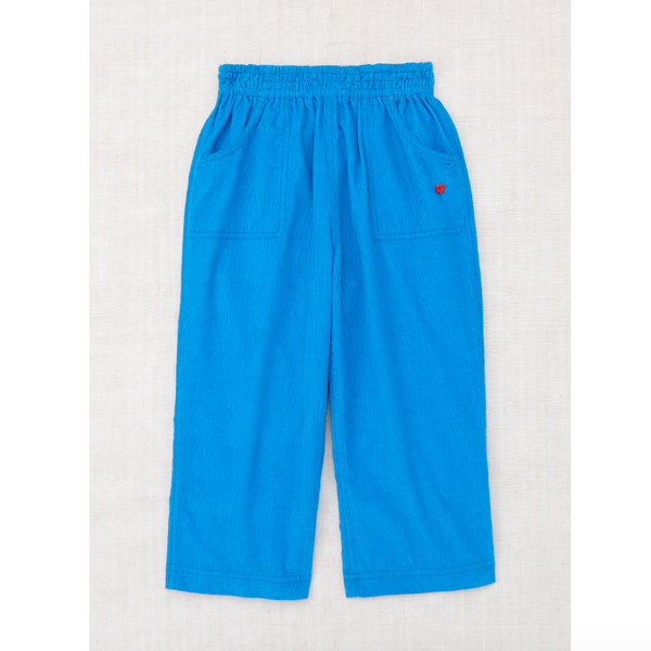 - The Corduroy Camp Pant is a relaxed pull-on style in fine wale cotton corduroy that lends itself to a nice drape. Featuring a gathered elastic waist, two patch pockets, one back pocket, and a small hand-embroidered Misha & Puff star motif.