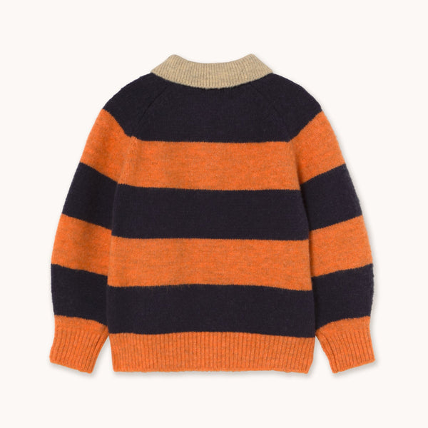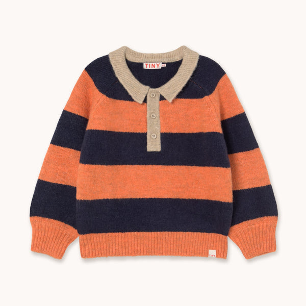 - This soft, fluffy sweater with a stripes pattern adds a playful touch to any little wardrobe. Featuring a half button-up front and cozy feel, it’s comfortable and stylish—perfect for cooler days, bringing both warmth and personality to every outfit.