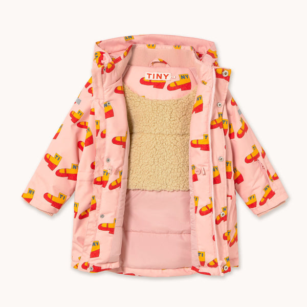 Keep little ones warm and dry from ski slopes to snowball fights in the Walk Snow Jacket. Designed for cold-weather adventures, it features a cozy sherpa-lined inner panel, fleece-lined pockets, and a snug hood for extra warmth. Ribbed cuffs, a full zip with snap-button placket, and an adjustable inner waist offer comfort and a secure fit. Reflective strips on the arms and hood add a smart safety touch for low-light days. Made from wind- and water-resistant fabric, ready for every snowy moment.