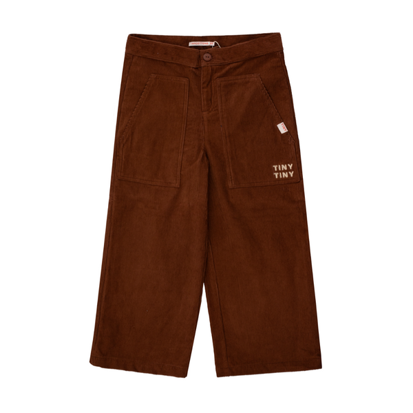 - These chocolate corduroy trousers are made from 100% cotton. They have a button and zip-fly, side pockets and a straight fit perfect for everyday wear.