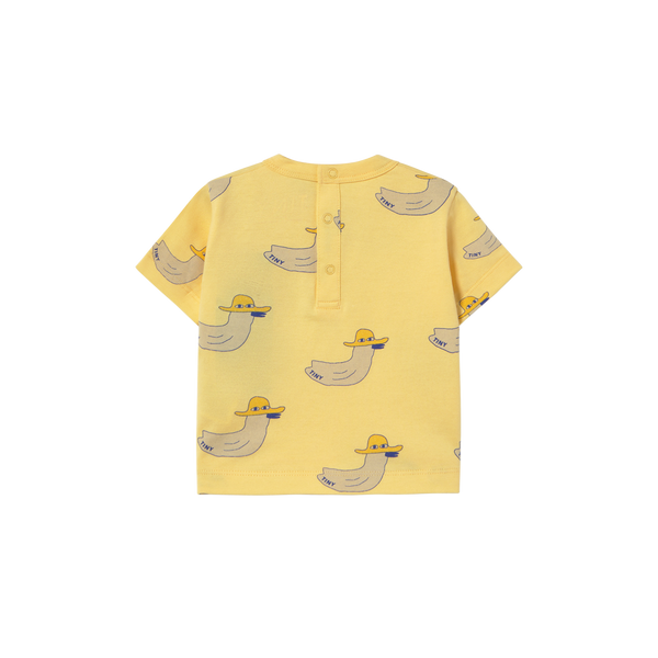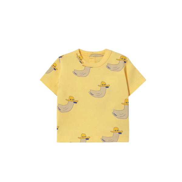 - When cute meets cool... this Ducks Baby Tee is made from a soft cotton fabric for ultimate comfort. It features a vibrant, bold allover print, adding a playful touch to your little one’s wardrobe. With its relaxed fit, short sleeves, and round neckline with a snap-back opening, it offers comfort and style for every adventure.