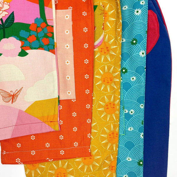 - Handmade with love using a mix of new fabrics, dead stock, and home textiles.
