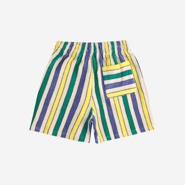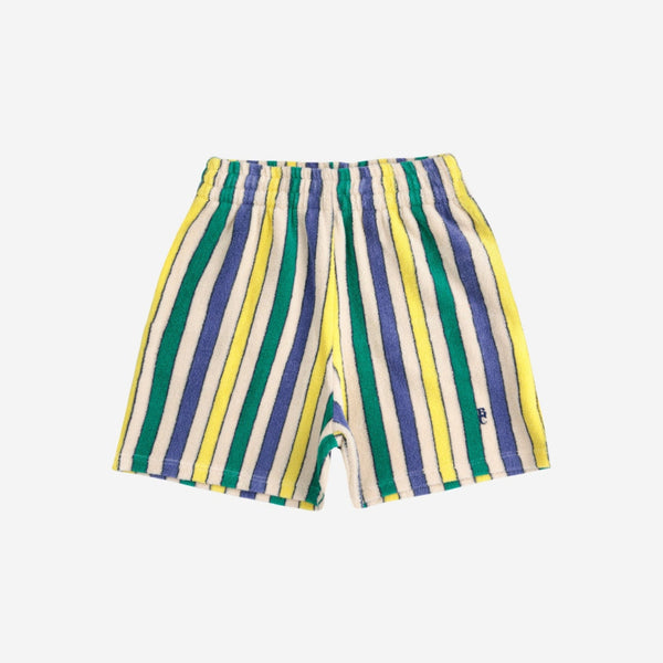 - The Multicolor Stripes Bermuda Shorts in terry offer every day comfort. Quick-drying, this style can easily be worn over a favorite swimsuit, or pair with the matching Multicolor Stripes Terry Shirt for a standout look.