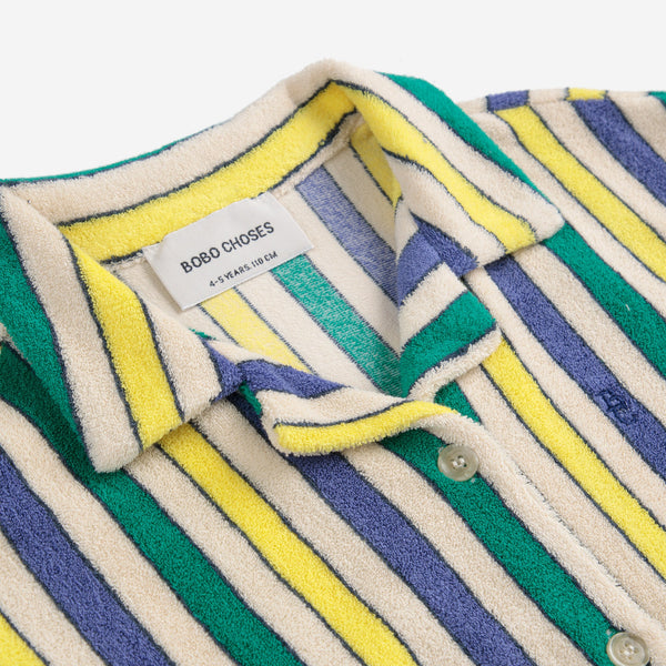 - The Multicolor Stripes Shirt in terry offers every day comfort. Quick-drying, this style can easily be worn over a favorite swimsuit, or pair with the matching shorts (coming soon!) for a standout look.