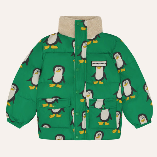 - The Penguins Puffer Jacket is the most fun! Designed with a playful allover graphic, this little style is oh so cute, but cozy too. Offering a high contrast sherpa neckline and brushed fleece body inside, your little one will be prepped and ready for the colder months!
