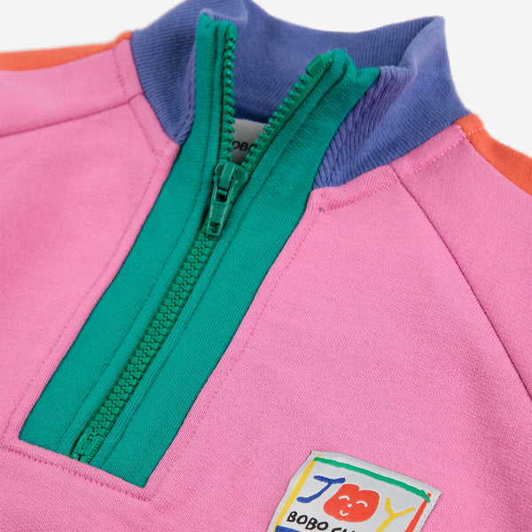 - Say hello to the Smiling Colorblock Sweatshirt. This style is bold in color and designed in an organic cotton stretch that is oh so comfortable. Pair with your Bobo Choses favorites this season!