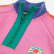 - Ribbed mock neck with zip closure