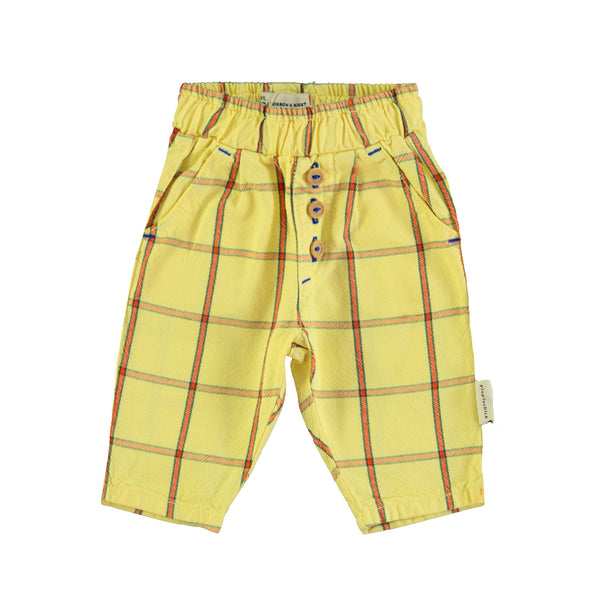- Our favorite Piupiuchick Trousers are back this season, redesigned in a beautiful pale yellow check. Available for baby & kids, this style is unisex and oh so comfortable to wear.