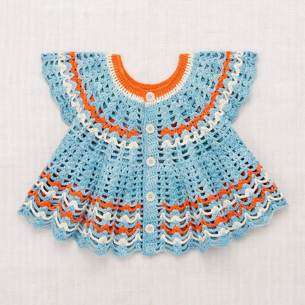- A voluminous, swing-style cardigan in a heavier-weight Pima cotton knit. The hand-crocheted work gives this style a nice, soft airiness. Features alternating stripe details and front corozo button closures.