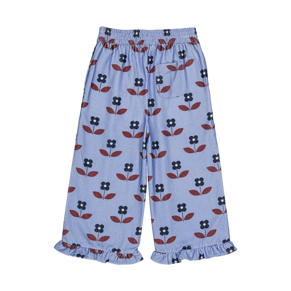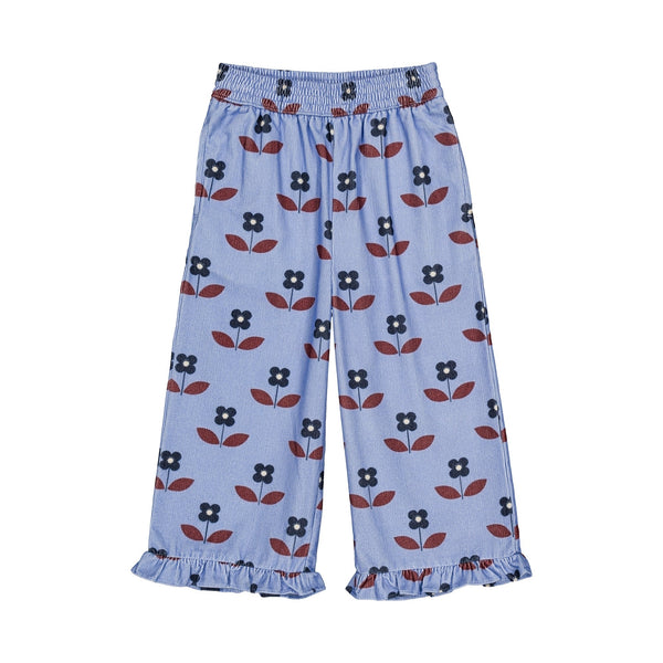 - The Malika Pants are the most fun! Designed in a light and airy cotton, this style is both simple and sweet featuring an elasticized waist and with ruffle hem details. Make it a darling set and pair with the matching Myrtille Blouse!