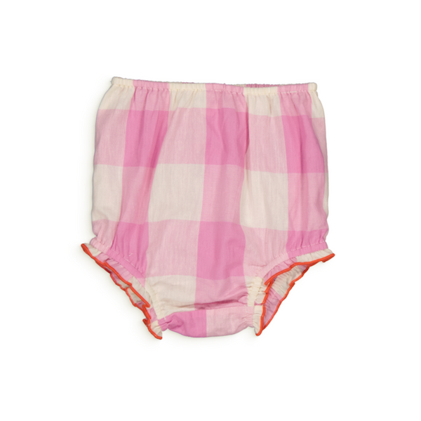 - Add a colorful pattern to your baby's wardrobe this season with Hello Simone's check lila print. The Babe Bloomer features beautiful scallop details, and a comfortable fit we love. Pair this style with the Antoinette Dress and make it a sweet set!