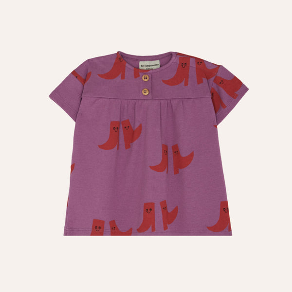 - The Happy Boots Baby Dress is a sweet addition to spring and summer. Designed in a comfortable ribbed cotton stretch, this style includes a snap closure at the neck for easy dressing. We love this little number paired with the matching Happy Boots Baby Bloomer.
