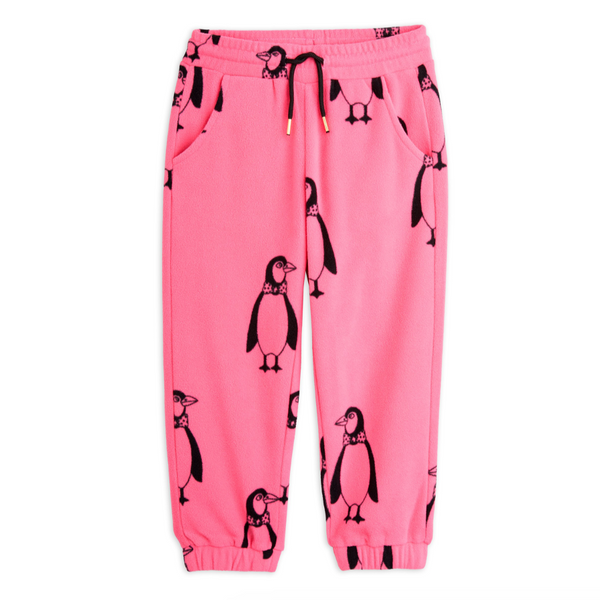 - The much loved penguin print has arrived in a cheerful pink! Designed in the coziest fleece, this style makes for an extra cute bottom for the season. Pair with the matching jacket for chilly days!