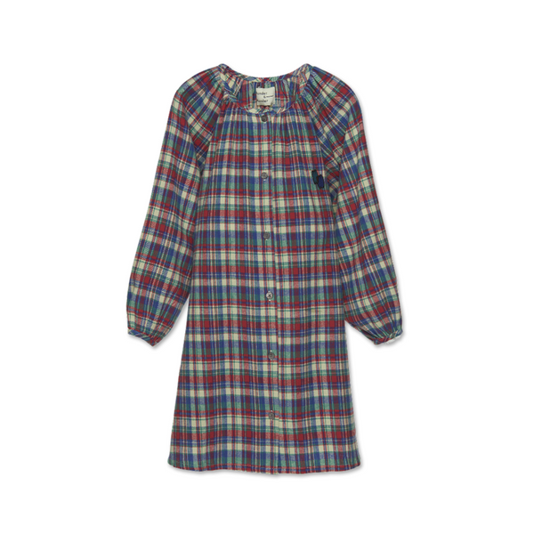 - The sweet Saara Dress in a bold, multicolor plaid is designed in an extra cozy flannel-like cotton. Complete with an easy, swingy silhouette we love this style layered up with tights or leggings underneath.