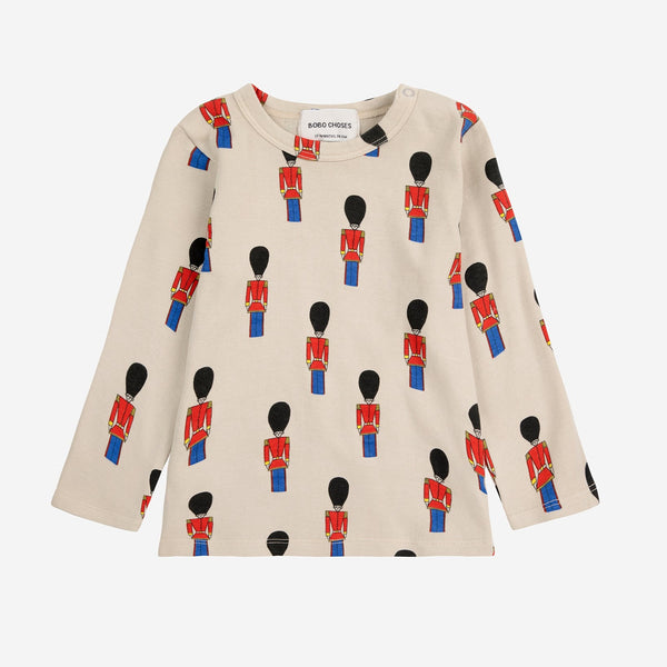 - Featuring one of Bobo Choses signature graphics from the AW24 collection, we welcome the Baby Little Tin Soldiers T-Shirt! Designed for a snug fit in a comfy cotton stretch blend, we love this style paired with the Beneath the Moon Denim Pants.