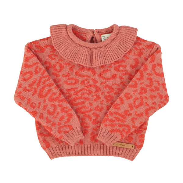 - The Knitted Sweater in a bubbly pink animal print is the color pop we've been waiting for this season. Designed in an ultra soft blend and featuring a fun ruffled collar, we adore this style for the season!