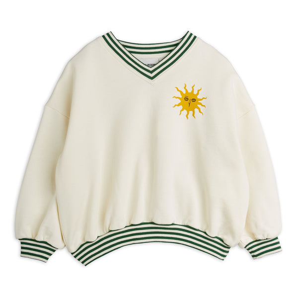 • Designed in comfortable cotton, the Sun Sweatshirt is here to layer with all of your pre-fall favorites!  Featuring graphics front and back, this style features vintage-inspired ribbed trims and a v-neckline.