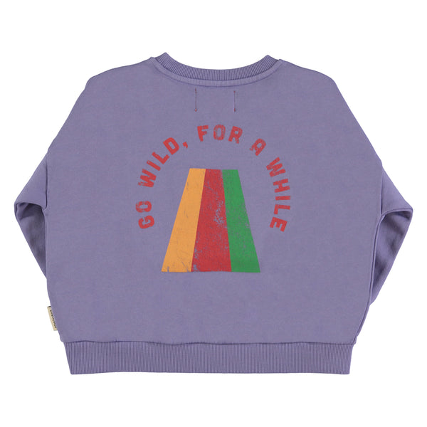 - We love a bold pop of purple this season! This Sweatshirt style pays homage to our wild little ones who cannot be tamed, with graphics both front and back.