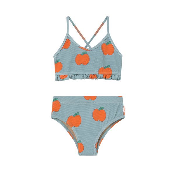 - Hit the beach in style this season in the Apples Swim Set! Designed in a fresh allover print we love, this adorable set features a scoop neck top and high waisted bottom.