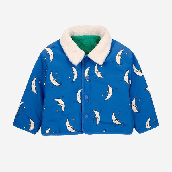 - We adore this playful outerwear style for baby! The Beneath the Moon Jacket is reversible, giving your tiny pal two colorful and exciting ways to wear. Wear with the colorblock sherpa facing outward for cool, early fall mornings, and reverse when you need a little extra warmth!
