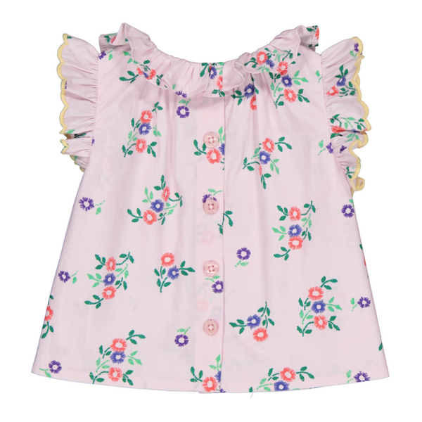 - Add a colorful pattern to your baby's wardrobe this season with Hello Simone's beautiful floral pensee print. The Jenny Blouse has beautiful ruffle and scallop details, and a flowy fit we love. Mix this style up with your favorite bloomer bottom!