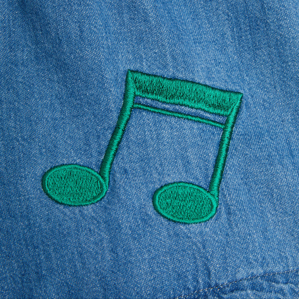 - The Note Lightweight Denim Shorts are the perfect addition to your little one's wardrobe. Designed in a beautiful blue and with contrast embroidered music notes, this style pairs beautifully with the top of your choosing.