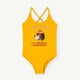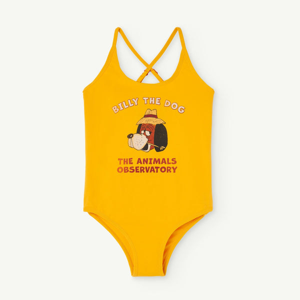 • The Octopus Swimsuit is here and this season it features Billy the Dog!  This style is a classic one piece silhouette with adjustable straps that criss cross in the back.